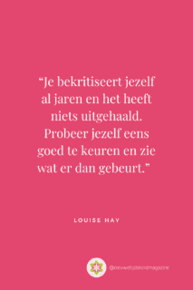 “Je bekritiseert jezelf al jaren en het heeft niets uitgehaald. Probeer jezelf eens goed te keuren en zie wat er dan gebeurt.” – Louise Hay